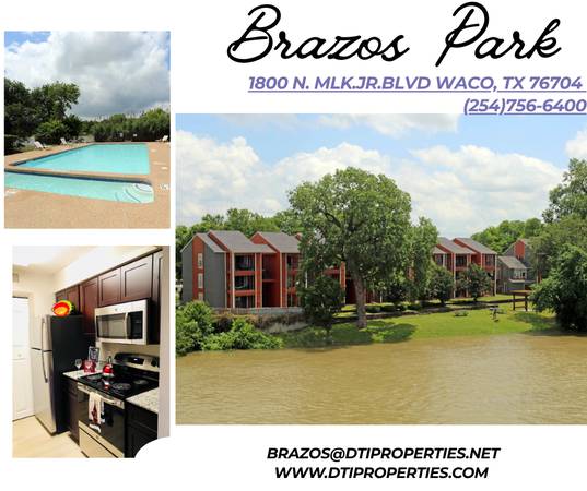 Brazos Park Apartments offers the very best of gated River View Living!! We are also just across the river from Booming Downtown Waco, Magnolia Market, few short minutes from Baylor University & McLane Stadium, and short walk away from Cameron Park, Cameron Park Zoo! Whether you live an active lifestyle, or just want to watch the river flow by from your patio, Brazos Park is the perfect community for you!