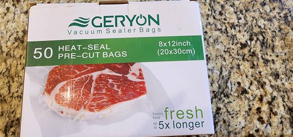 Unopened packaging for both Geryon food vacuum sealing machine and 200+ bags.