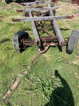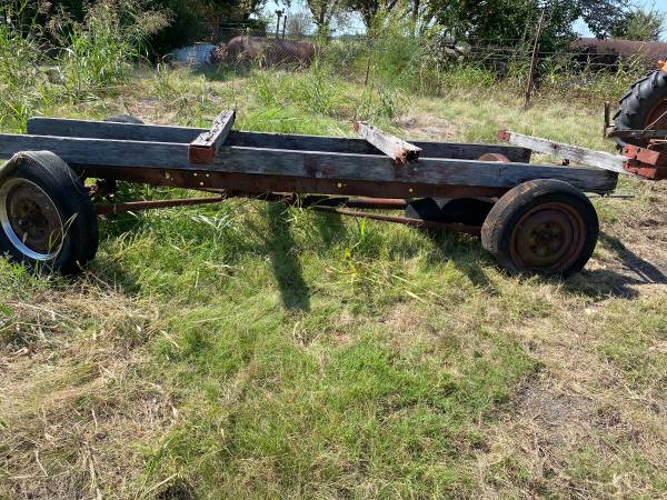 Old car frame made into a trailer will need new tires Cash only Must pick up in Riesel on a Saturday