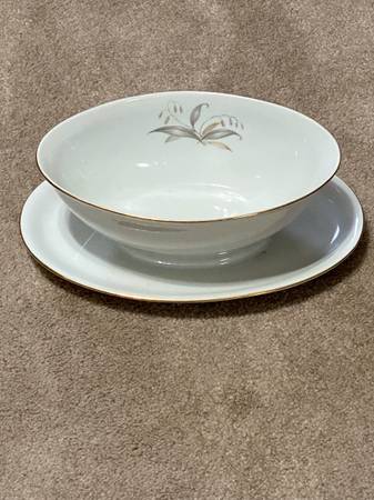 Golden Chicken $40. (Blue Chicken $50. ….. SOLD). Gravy Boat $40. All in very good Shape, no cracks or breaks.