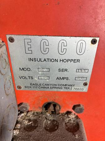 For sale is my cellulose insulation blowing machine ready to use and works well. Has electric self feed bale grinder, 100' 3" hose, nozzle, remote control at spray head for blower control, can spray water to help when needed.