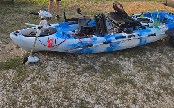Great kayak upgraded steel rudder,, upgraded adjustable seat, anchor and kayak trolling motor. Just dont use anymore..