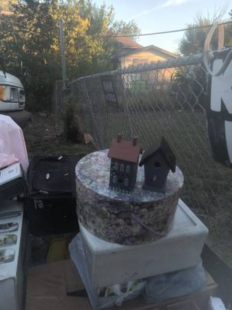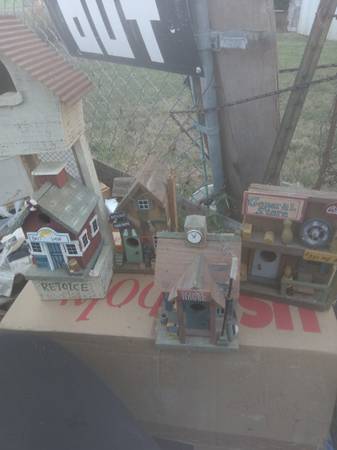An assortment of birdhouses different types colors one has copper one picture of bird houses approximately 25 or 30 pieces.