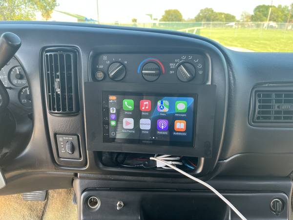 - Extra large blindspot mirrors installed; Professionally installed backup camera, with a display touch screen and Apple Carplay radio/stereo system;