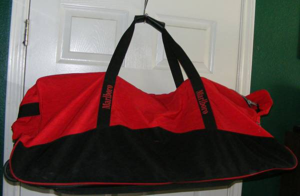 For Sale Is A MARLBORO Large Vintage Rolling Wheels Duffle Gear Red Black Bag. 36" x 16" x 16" Good Used Condition. Wheels were loose and have been Repaired. Some wear on the bottom. See Pictures...
