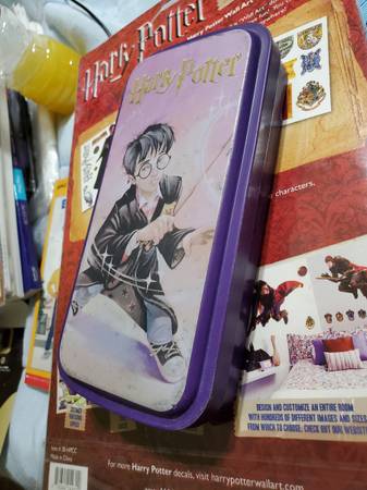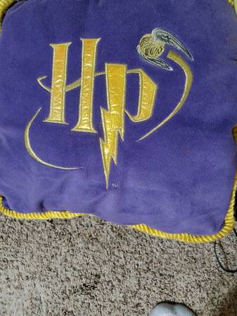 Harry potter pencil case- $6 7 Harry potter and the sorcerer stone movie trading cards #6, 31, 36, 54, 73, 75, and 77- $7 Harry potter purple quidditch decor pillow- $15 Willing to separate Pick up...