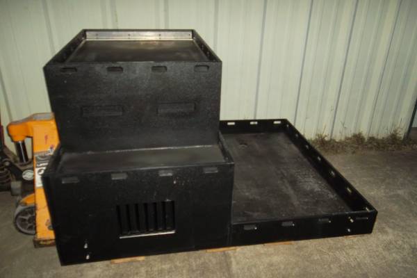 I bought this Plastix Plus Poly Vault Storage as a surplus product that was formally used by law enforcement for storing high security or expensive items. This storage unit was custom made by Plastix Plus to fit specific vehicles that matches certain dimensions. It's very heavy as you can see from the attached pictures being on a pallet.