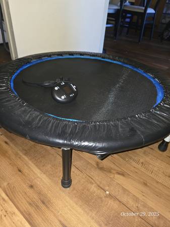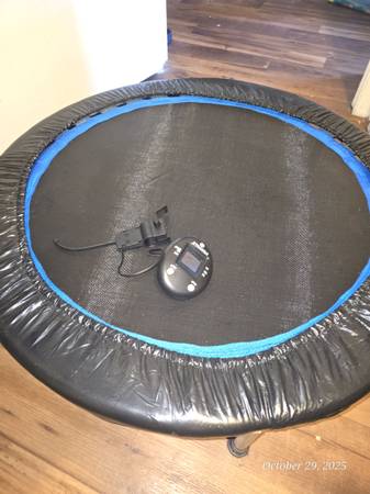 Workout trampoline. Lightly used. Works fine, just prefer other workout methods. Comes with counter machine