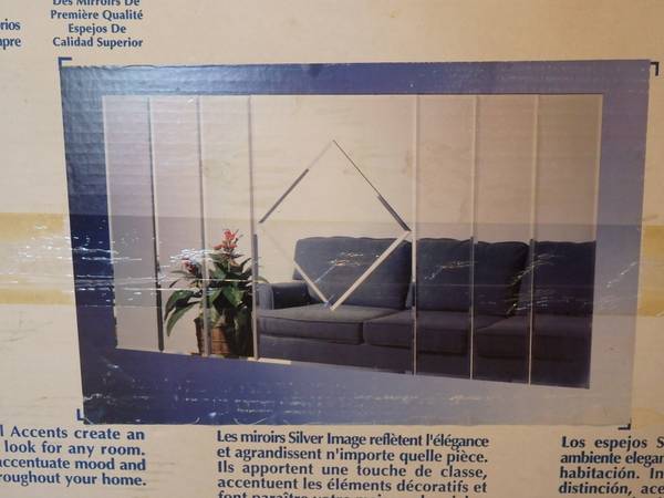 Set of beveled mirrors that can be arranged in any pattern you choose. Total of 8 beveled mirrors : 6 are 8" x 36", 1 is 24" x 36", and 1 is 16" x 16". Still in the factory sealed box. Call 972-26Four -8Three02. Please phone calls only, we will not respond to texts. $20 cash in person only.