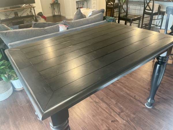 Slightly distressed black counter height wood dining table