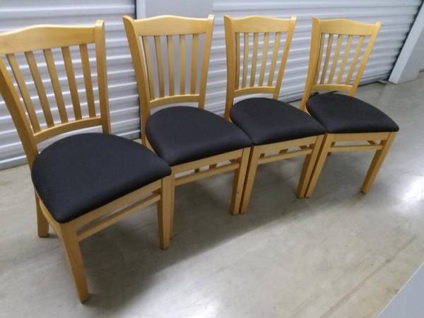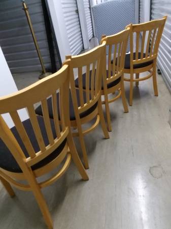 very good, light colored chairs with black fabric seats. 35"h, seats 17"w x19"., no damage!...can meet at public location .