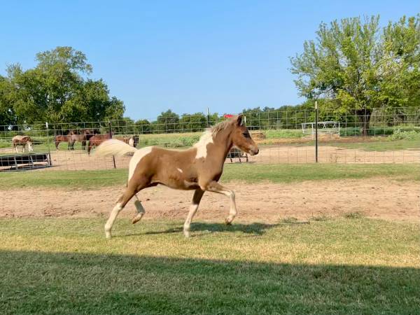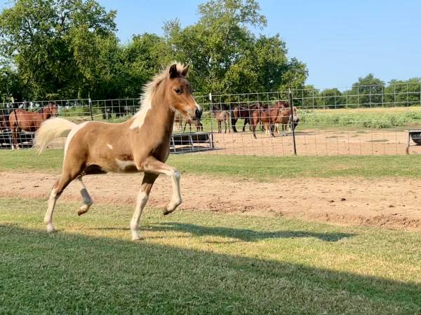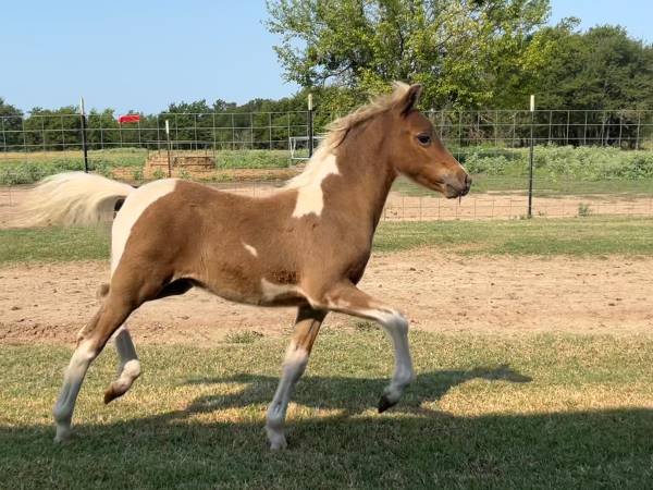 This lil pony is fancy! He’s got a beautiful Head and super long neck and trots amazing! He’s got good pinto color! Both parents are champions in the show ring! He’s registered with AMHR and ASPC!...