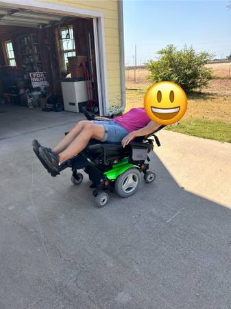 $1200. Permobil M300 with Corpus 3G seat system, high quality Electric wheelchair! Pretty lime green color. Under 5 hours of use. Very clean and has a very new battery. Electric seat lift 8 inches to adjust height for tables, benches etc. seat angles up to 50 degrees. Multiple positions with back, seat and leg rest angles. Corpus 3G is an ergonomically shaped seat easily adjusted to the users needs. Front seat driver can control or a helper can control from the back. Maximum weight of user 300 lbs. Ground clearance 3”. Purchased originally for a family member but never needed to use it. This chair has been kept indoors but can be used outside as shown in the photos.