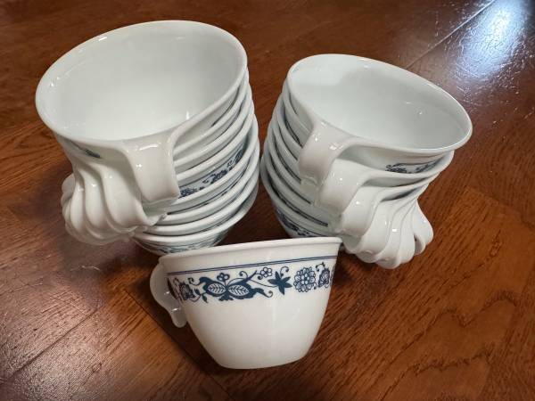 Vintage Corelle Old Town Blue Onion hook handle stacking cups- 16 total