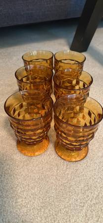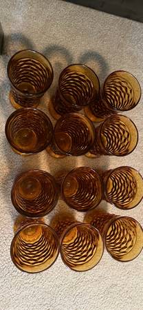 12 - Vintage Indiana Glass Amber Whitehall Flared Rim Iced Tea Glasses & 6 - Tumblers Used but loved & kept in excellent condition