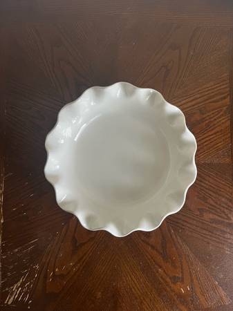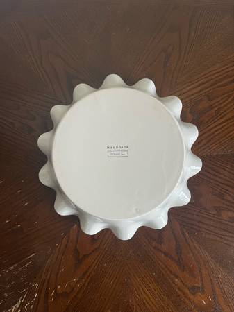 Brand new. Never used. Magnolia brand. • Dimensions: 10.25” diameter x 2.5”H • Material: Ceramic • Oven Safe up to 400 • Microwave Safe
