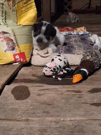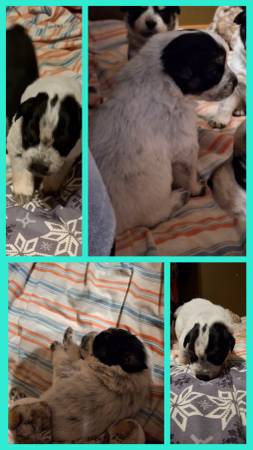 Registered Aussie (mom) and full blooded blue healer (dad) puppies. 3 boys 5 weeks eating solid foods a drinking water active a comes with first set of shot kit an dewormed if get now with small...