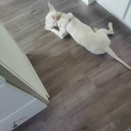 Female bull terrier fixed up to date on shots. She would be great as an only pet companion. She doesn't like cats and doesn't understand small dogs. She hasn't been aggressive towards humans just very playful. Our small dogs don't like her so we can't keep her. Please text if interested. Serious inquires only