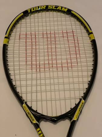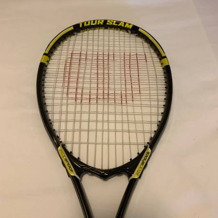 For Sale is a Wilson Tour Slam Stop Shock Tennis Racket. Size 4 1/4" Grip Good Used Condition